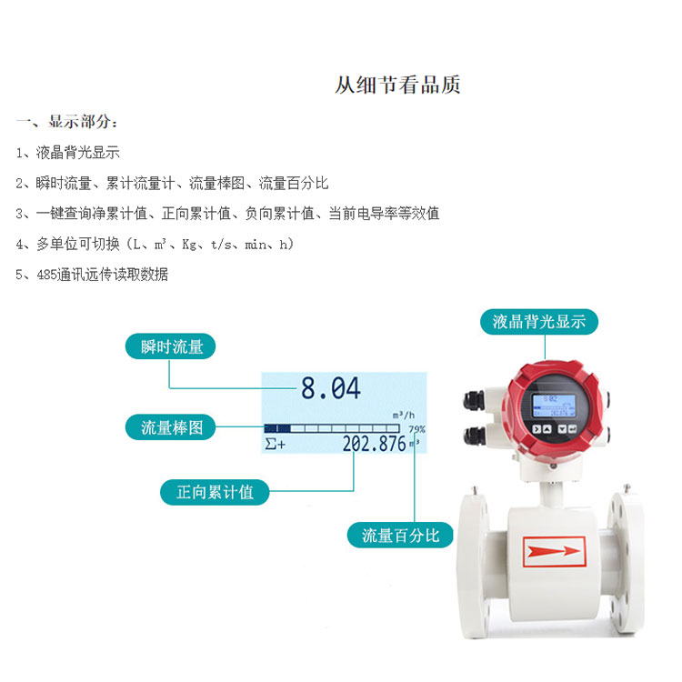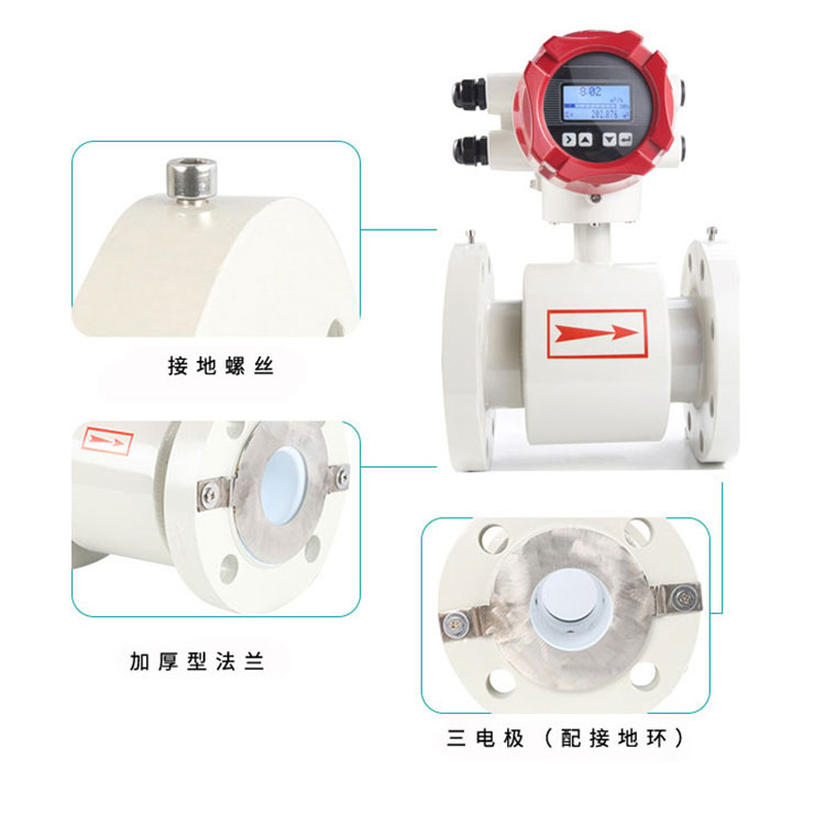 一體式電磁流量計是基于法拉第電磁感應定律工作的,用來測量電導率大于5μS/cm導電液體的體積流量,是一種測量導電介質體積流量的感應式儀表。除可測量一般導電液體的體積流量外,還可用于測量強酸強堿等強腐蝕液體和泥漿、礦漿、紙漿等均勻的液固兩相懸浮液體的體積流量。
