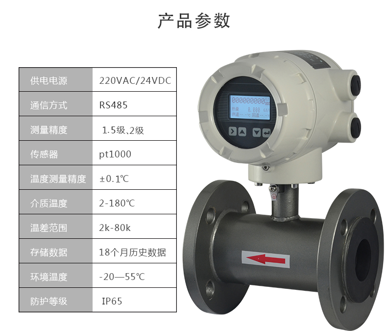 電磁熱量表主要是對熱交換系統(tǒng)中載能介質(zhì)(液體水)的供水溫度、回水溫度及瞬時(shí)流量進(jìn)行實(shí)時(shí)測量,并按照熱力學(xué)能量計(jì)算公式,對系統(tǒng)消耗的冷量或熱量值進(jìn)行計(jì)算并保存的裝置。其中電磁式流量傳感器是通過法拉第電磁感應(yīng)定律,將瞬時(shí)流量信號線性的變化為感應(yīng)電動勢這一電信號,從而得到瞬時(shí)流量信號。計(jì)算器將流量信號與溫度傳感器采集的溫度信號進(jìn)行積算,得出我們需要的能量值。