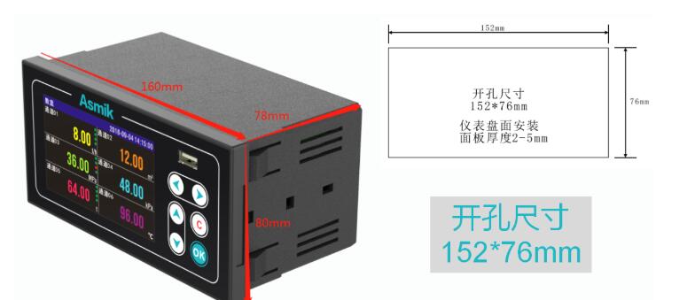 儀表尺寸  :面板 160*80mm,開(kāi)孔 152*76mm